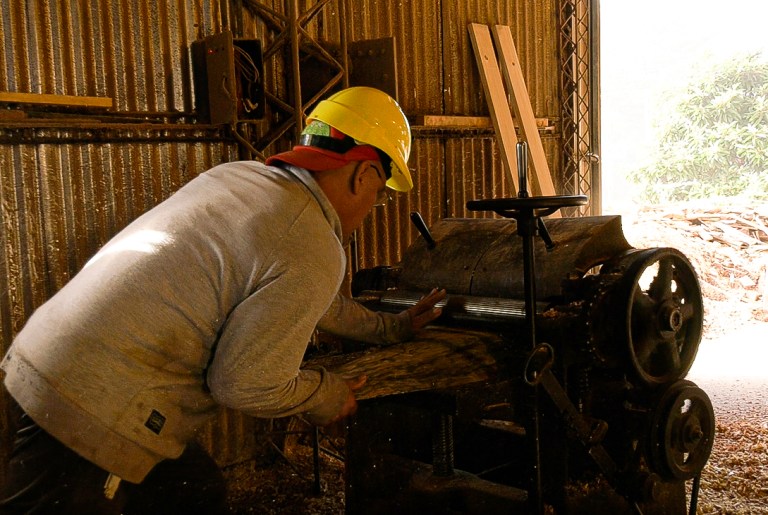 Para concretar las tareas de elaboración y las terminaciones del producto, el taller cuenta con maquinarias como sierra vertical y afiladoras.