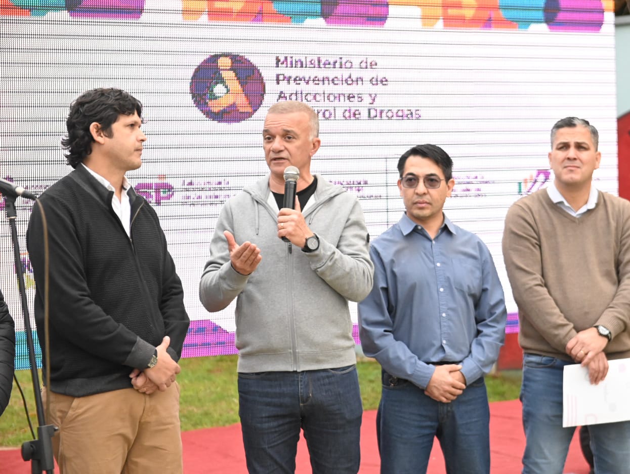 El Ministro enumeró las distintas instituciones, comunidades educativas, tanto de universidades públicas, universidades privadas, terciarios, también resaltó la presencia del Decano de la Facultad de Humanidades y Ciencias Sociales, Cristian Garrido; así también el IPS, el Concejo Deliberante, intendentes que han entendido en esta responsabilidad y esta gran posibilidad que se les presentaba de poder ofertar lo más cercano al domicilio de las personas que lastimosamente estén atravesando situaciones problemáticas de consumo o adicciones, han conformado también espacios preventivos y asistenciales.