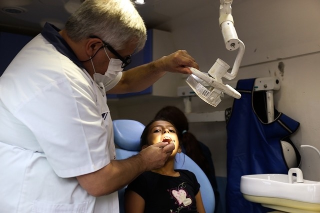 El equipo a cargo de los consultorios móviles está integrado por un coordinador general, médico de familia, pediatra, odontóloga, dos enfermeras y cuatro choferes. Junto a los equipos locales, llevan adelante los operativos de salud. Durante la jornada, se registra al paciente en una planilla con los datos personales necesarios para su identificación. Se realiza un control antropométrico, de signos vitales y el carnet de vacunación. Luego, son derivados al sector correspondiente para ser atendidos.