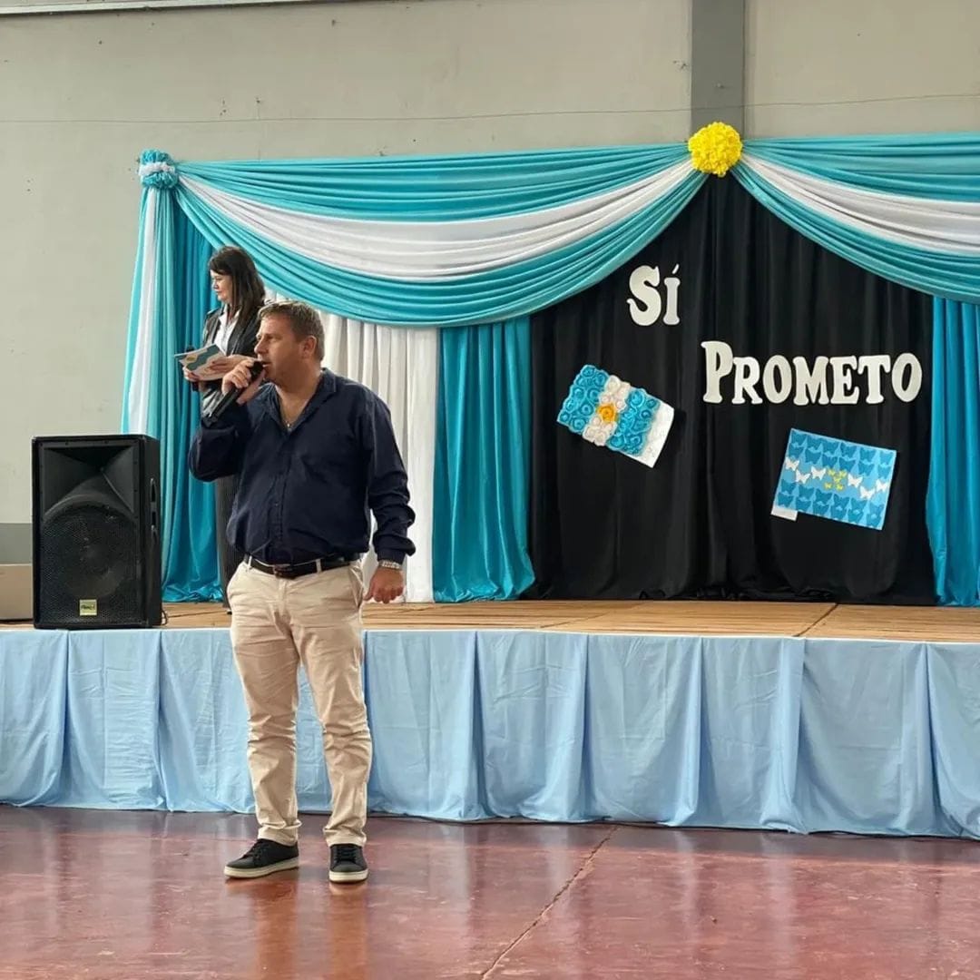 Uno de los momentos más emotivos de la jornada fue cuando los alumnos de 4.º grado de las distintas instituciones educativas de la localidad realizaron la promesa de lealtad a la Bandera Argentina, en un gesto de compromiso y amor a los símbolos patrios.