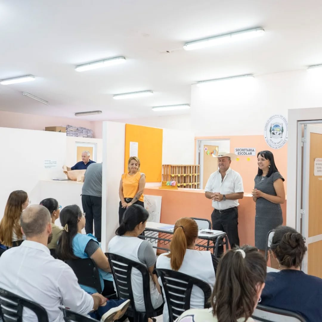 El Intendente estuvo acompañado por el secretario coordinador de Gabinete, Sebastián Escalante, y la directora de Educación, Karina Britez, quienes reafirmaron el acompañamiento del Municipio, poniendo a disposición todas las herramientas posibles para fortalecer esta noble tarea que implica formar a las nuevas generaciones.