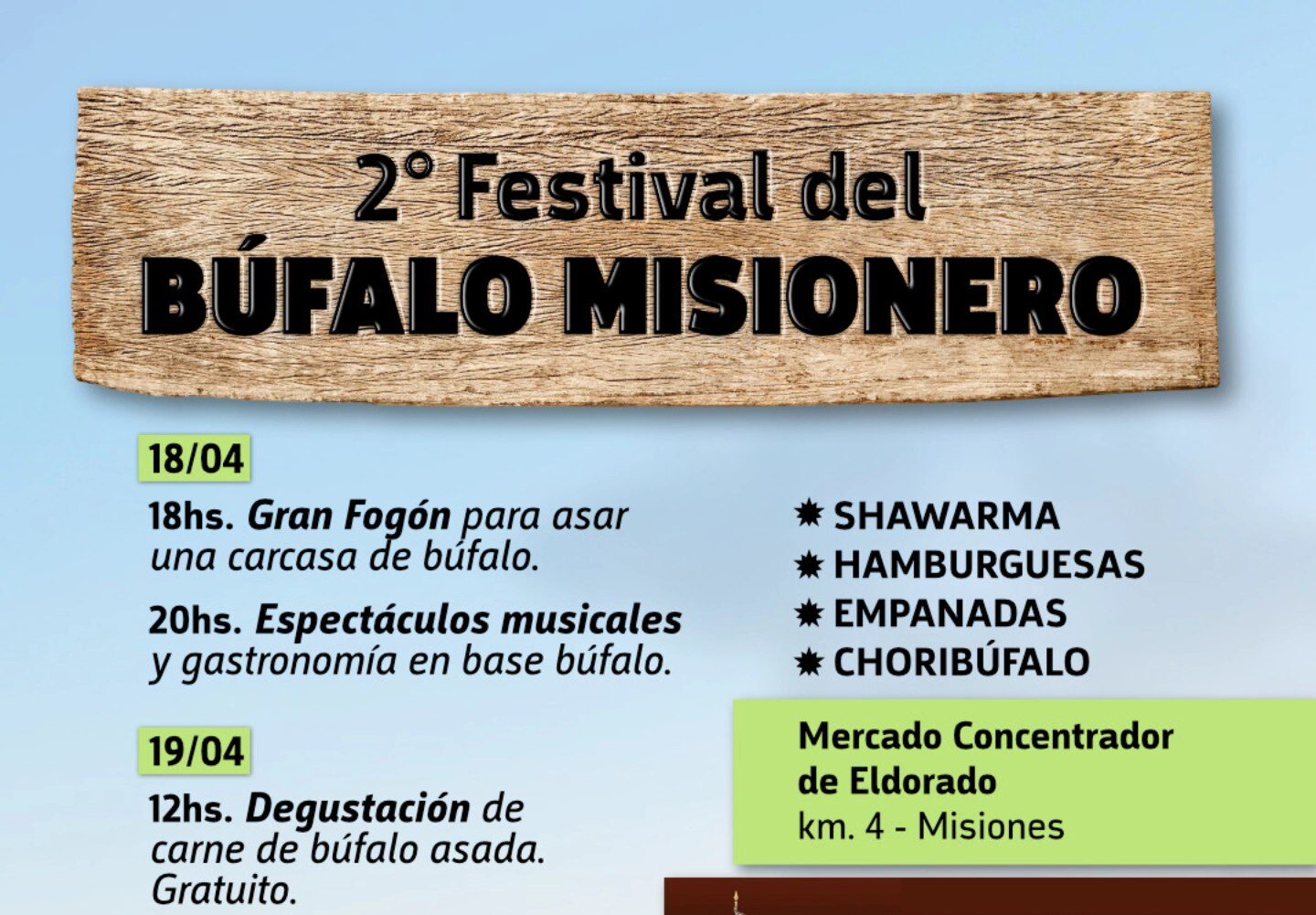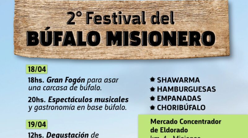 El próximo 18 y 19 de abril, la ciudad de Eldorado será escenario de una propuesta gastronómica y cultural única: el 2° Festival del Búfalo Misionero, que tendrá lugar en el Mercado Concentrador (km 4).